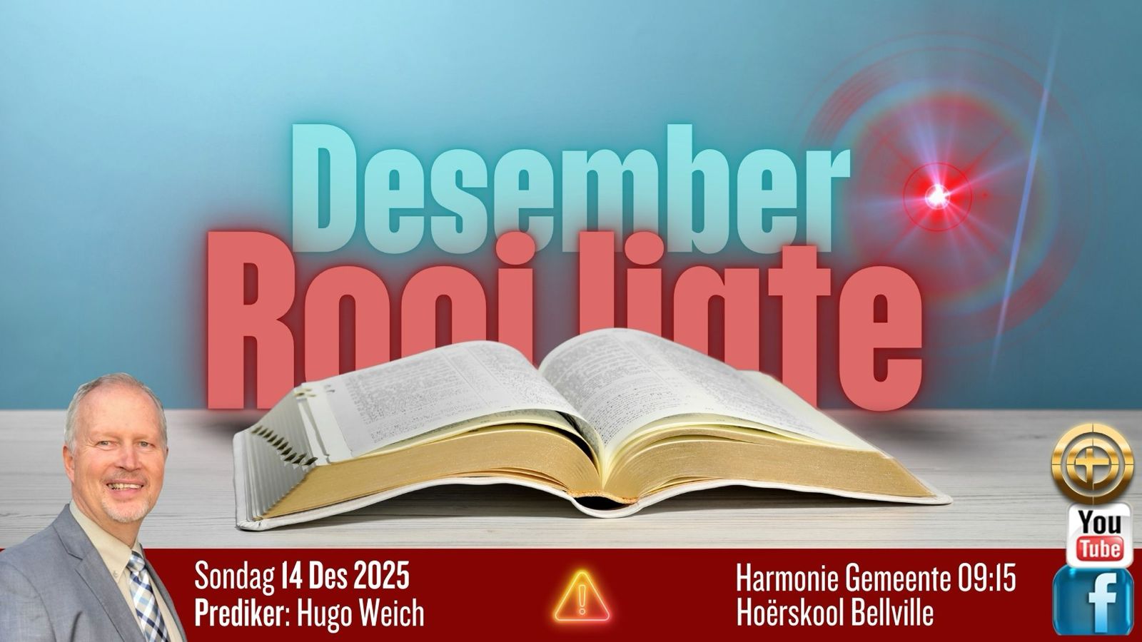Kom kuier saam rondom die Woord. Ek gaan praat oor die “Rooi ligte” van die Feesseisoen. Dalk het ons al te gewoond geraak aan alles wat saam met Kersfees kom. En, ons almal ken al die hele storie van Maria en Josef…. al was ons nie daar nie! Is dit dalk nodig om versigtig te wees, om nuut te dink, om anders te dink?