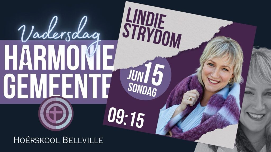 Vadersdag & Jeugdag vieringe is op 15 Junie by Harmonie Gemeente, by Hoërskool Bellville. Ons Gasspreker is Lindie Strydom. Almal is hartlik welkom, 09:15. Spesiale geskenkies word uitgedeel.