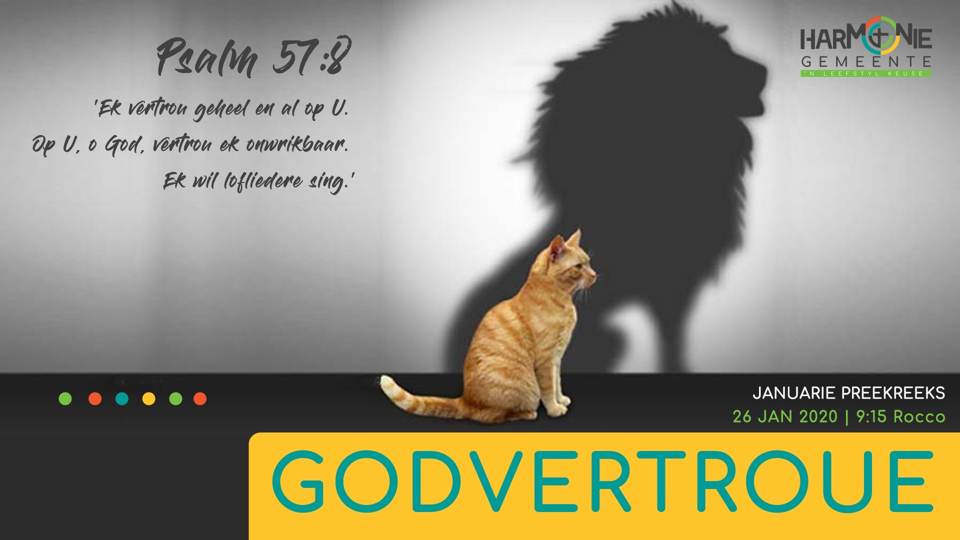 https://youtu.be/4NOBIB6Tly4 Godvertroue 26 Januarie 2020 Rocco 2 Kronieke 32:6-9 (geveg teen die Assiriers) Daar het hy (Koning Hiskia) hulle bemoedig en gesê: “Wees sterk en vol moed. Moenie bang wees vir die koning van Assirië of sy magtige leër nie, want daar is ’n baie groter mag aan ons kant! Hy het dalk ’n …