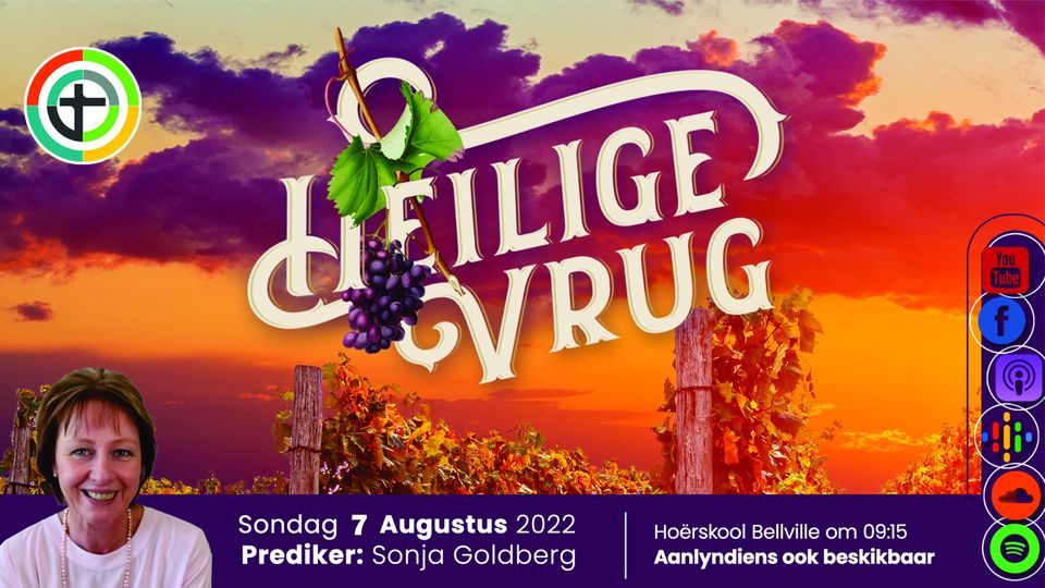 Worstel jy dalk soms met die gedagte dat jy nie “Heilig genoeg is nie”? As mens al die moets en moenies wat die lewe vra – sou aanhang, gaan ek en jy mos altyd voel ons kan nie ware heilige kinders van God wees nie; dat jy êrens te kort skiet! Hoe kry ‘n mens dit reg? Hoe kan ek iemand wees wat opregte, heilige vrug dra? Die antwoord is duidelik in God se Woord! Moenie alleen deur die proses probeer gaan nie. Ons het ‘n verhouding met Jesus Christus nodig. By Hom kry ons die water wat vir ewig sal hou. Om heilig te wees en Heilige vrug te dra gaan oor soveel meer. Dit beteken dat jy nie net jouself nie, maar ook al die ander mense om jou vir God se Koninkryk kan wen!