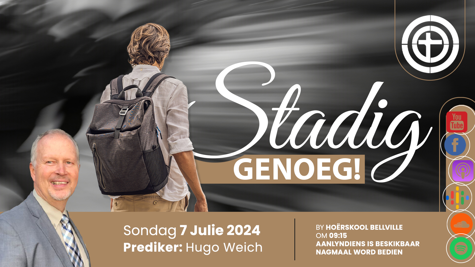 Wat sou jy daarvan dink as ek vir jou sou sê: Die grootste vyand van die lewe wat jy graag wil hê, is dalk juis die lewe wat jy nou leef. Ons gaan nie net soos gewoonlik kyk na die Waarheid van die Evangelie van Jesus Christus nie, maar ons gaan kyk na die “manier” wat Jesus gelewe en liefgehad het. Hoe kan ons inval by “Sy ritmes” en hoe dit ons leefstyl hier en nou kan beïnvloed om “Stadig genoeg” te loop. Ek gaan gesels met Annerien de Villiers gesels – een van ons eie suksesvolle Comrades 2024 atlete, en – ek gaan jou huis toe stuur met iets in die hand, wat die totale loop van jou lewe kan verander.