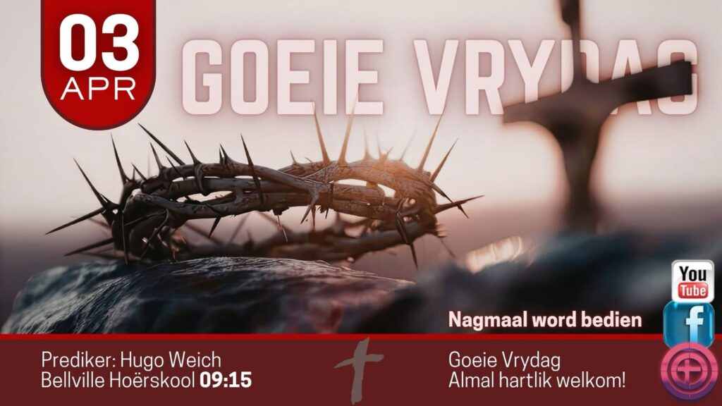 https://youtu.be/JNna4tj4BUI Tema: Wie moet die geveg begin? Heb 12 Gebed: Die lewe is nie aldag ‘n maklike pad nie - ‘n geveg – het sy uitdagings; ons worstel met persoonlike goed, ons stry teen die vlees, ons word moeg en uitgeput..... – Here kom leer ons vandag – kom gee ons nuwe moed – Kom …